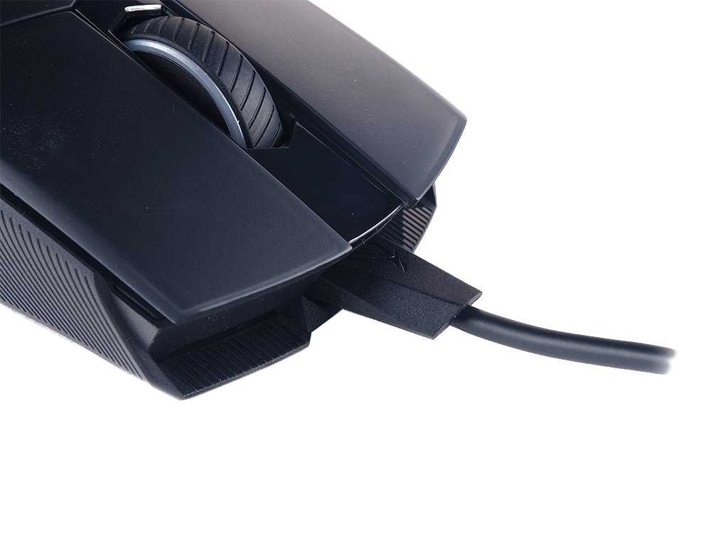 Передняя часть мыши получила взамен выходящего кабеля компактный разъем USB Type-C, что становится неотъемлемой частью современных гаджетов. Соединительный провод без оплетки длиной 1,8 м довольно эластичный и неплохо держит форму. Кабель может работать с мышью и заряжать встроенный аккумулятор.