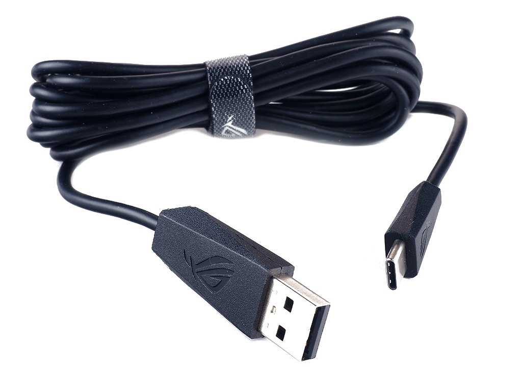 Поговорим про комплектный кабель ROG Paracord. Это легкий и очень гибкий двухметровый кабель формата USB/Type-C. Из-за своей мягкой нейлоновой оплетки он абсолютно не сковывает движения мышки. При этом используется не только для подзарядки устройства, но и подходит для обычного пользования, если по каким-либо причинам нет возможности подключить мышь по Bluetooth или интерфейсу 2,4 ГГц через адаптер.