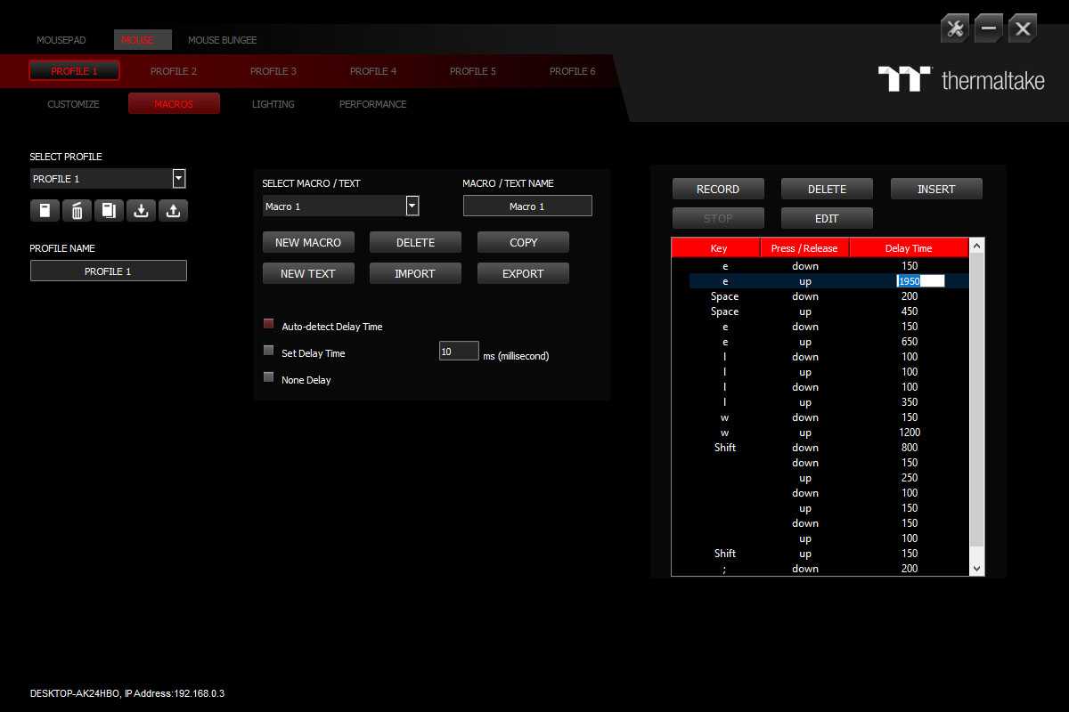 Функция настройки макросов очень проста. В левой части экрана находится список сохраненных макросов, а в правой части — возможностьзаписи и редактирования команд. Время задержек можно править в ручном режиме.