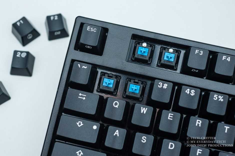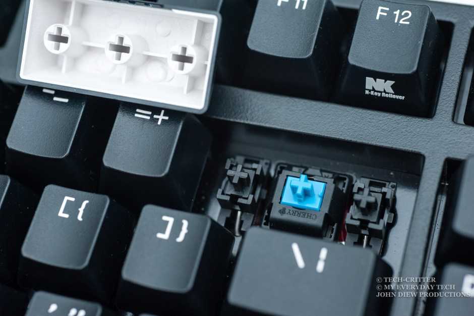 Removing the keycaps and we are greeted with the Cherry MX Blue switches. It also comes in Cherry MX Brown and Cherry MX Red variants.