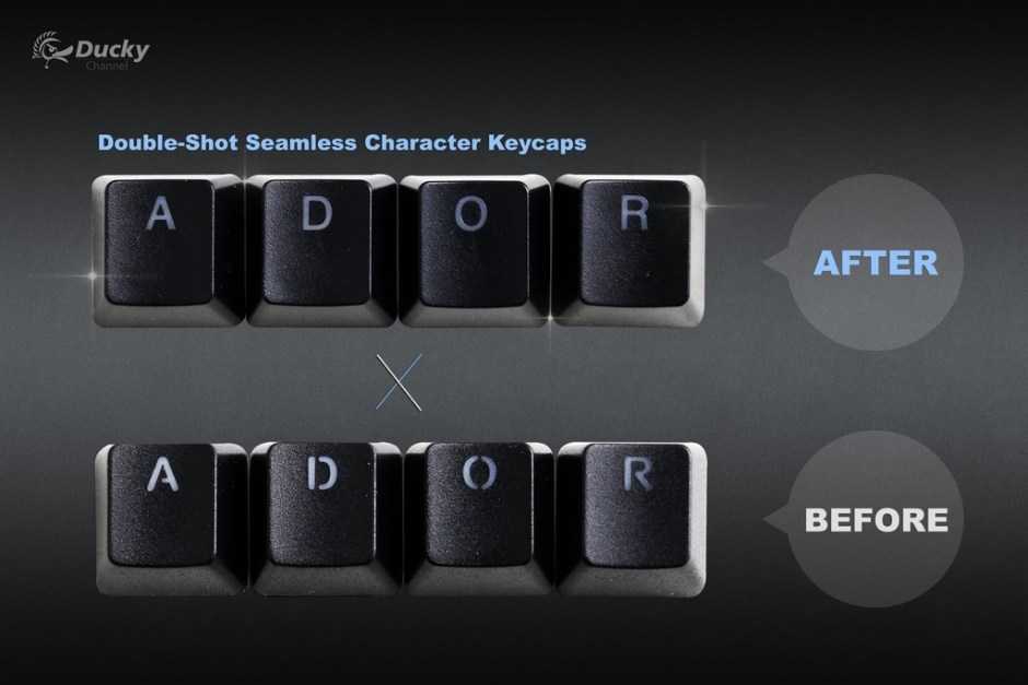 Ducky employs a new manufacturing process for their double-shot keycaps, called the Double-shot Seamless Character keycaps. As we all know that double-shot keycaps are way durable than regular pad-printed keycaps, but what does “seamless” actually means?