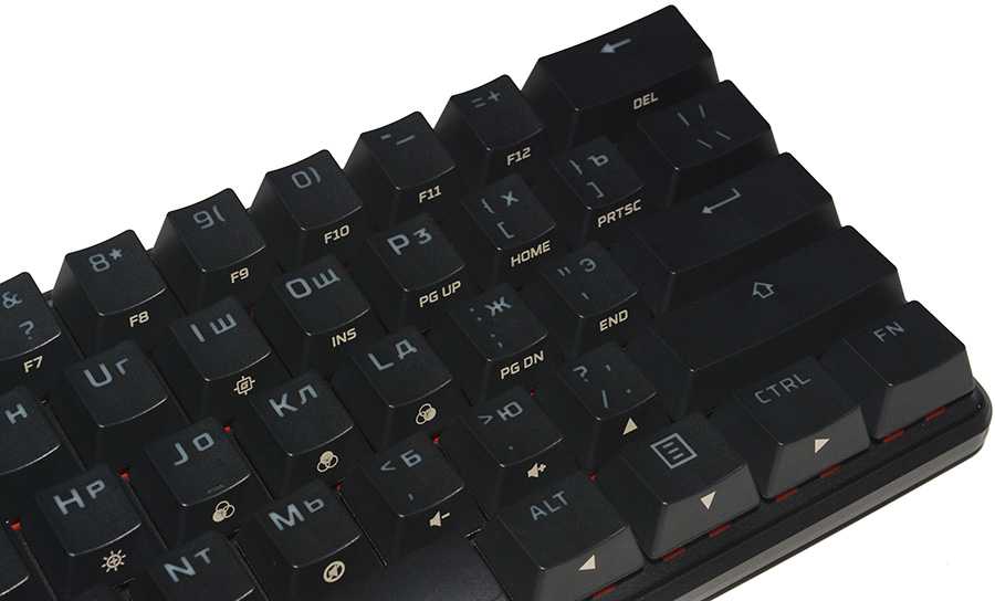 Большая часть клавиш имеет второе назначение, которое активируется при нажатии с клавишей «Fn». Благодаря этому данное решение не уступает в функциональности привычным полноразмерным клавиатурам. С той лишь поправкой, что потребуется некоторое время на привычку к новому форм-фактору.
