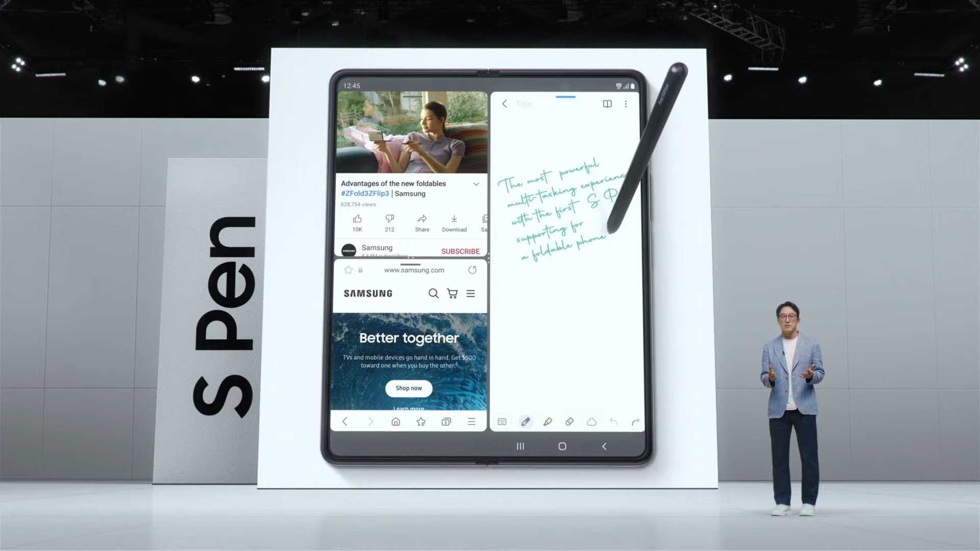 Презентацией компания подтвердила слухи о том, что семейство Note постепенно уходит в «славное прошлое» Samsung. Судите сами: сначала прошлый «фолд» оснастили блоком камер в стиле Note 20. Затем S Pen стал доступным для S21 Ultra, а теперь и для линейки Z Fold. Причем в двух версиях: Pro (длиннее, толще и тяжелее, плюс — позволяет переключение между девайсами) и Fold Edition.