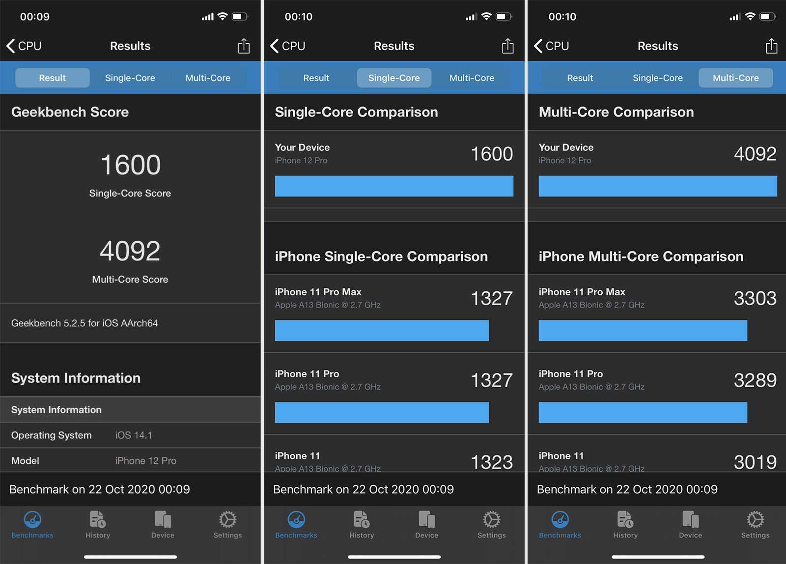 Вот результаты тестирования процессора iPhone 12 Pro в Geekbench 5: