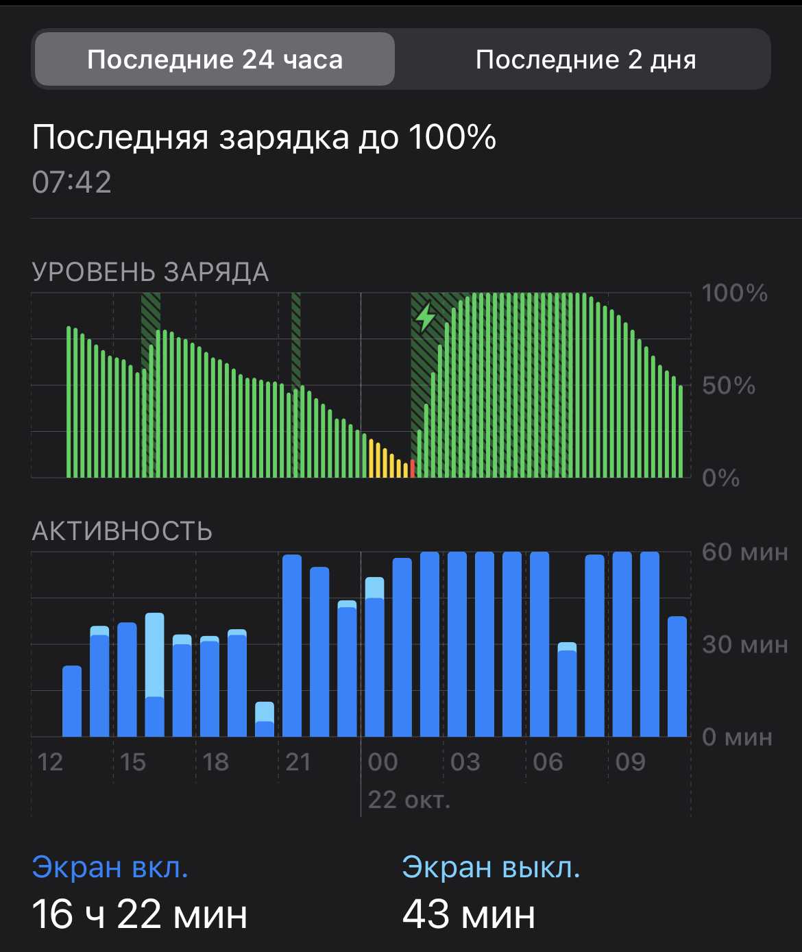 Мой текущий график использования основного iPhone 12 Pro сейчас выглядит вот так: