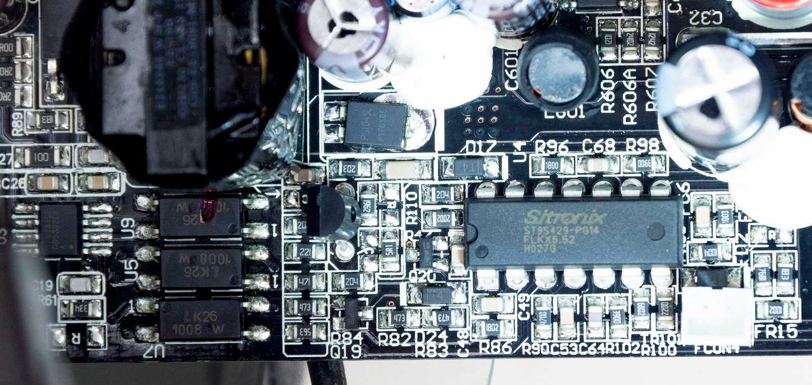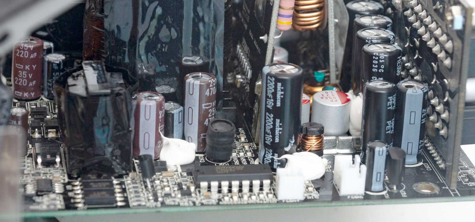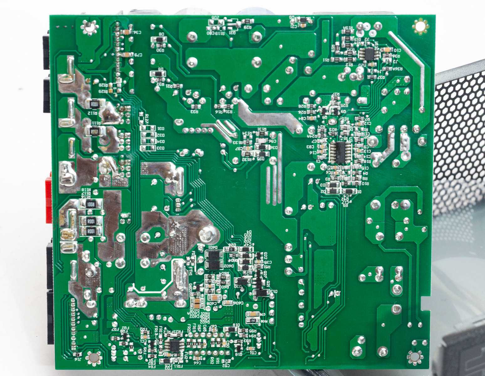 За фильтрацию помех на выходе отвечает множество электролитических и твердотельных конденсаторов Nippon Chemi-Con и Nichicon.
