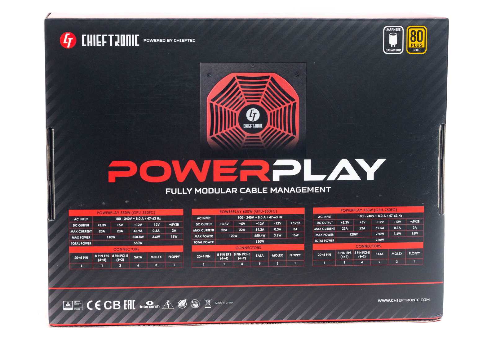 Ранее компания Chieftec представила суббренд Chieftronic. В ряду блоков питания значатся пять моделей серии PowerPlay: «золотые» (550, 650 и 750 Вт) и «платиновые» (850 и 1050 Вт). Низкая термонагруженность, вентилятор на подшипнике качения и топовые японские конденсаторы.