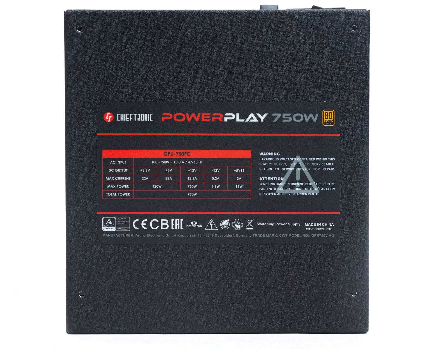 Модель Chieftronic GPU-750FC использует в основе платформу GPR от Channel Well Technology, основанную на резонансном полумостовом преобразователе LLC, синхронном выпрямителе и преобразователями DC-DC во вторичной цепи.