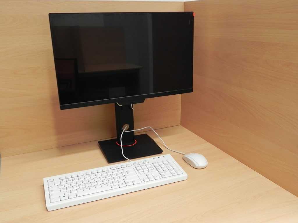- При необходимости моноблок можно превратить в информационный киоск, но тогда лучше использовать беспроводные мышь и клавиатуру или крепить кабели от проводных устройств к штанге устройства.