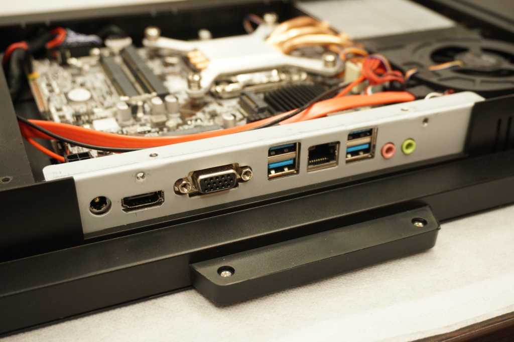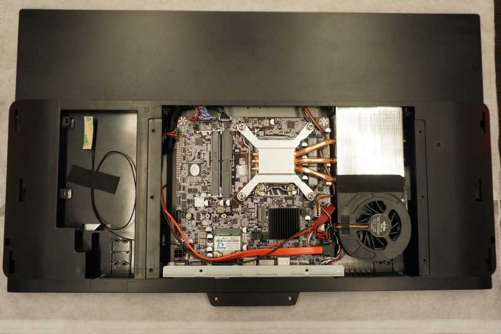 Как мы уже сказали, моноблок идет с предустановленной материнской платой. Здесь это AMD A320. Внутренности можно посмотреть ниже. Оперативная память стандарта DDR4.