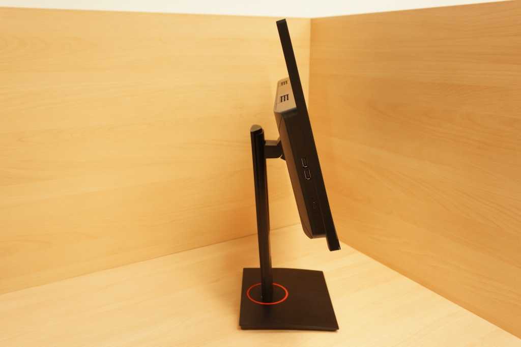 Экран с диагональю 23,8 дюймов, максимальным разрешением 1920 на 1080 пикселей, с IPS матрицей. Моноблок установлен на поворотном стенде, с регулировкой по высоте, наклону, повороту и развороту: