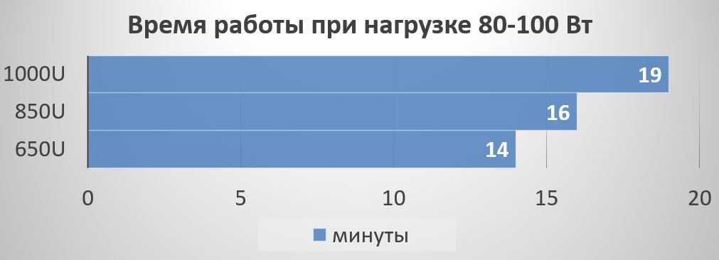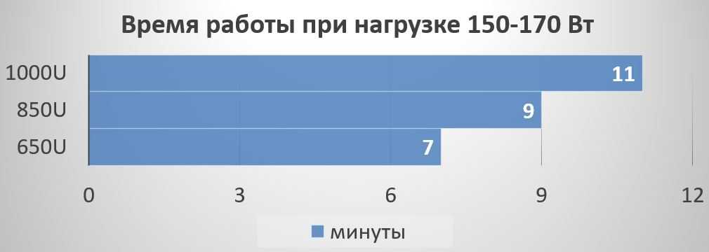 Время автономной работы уменьшилось вдвое. Младшая модель 650U справилась только с нагрузкой не более 170 Вт.