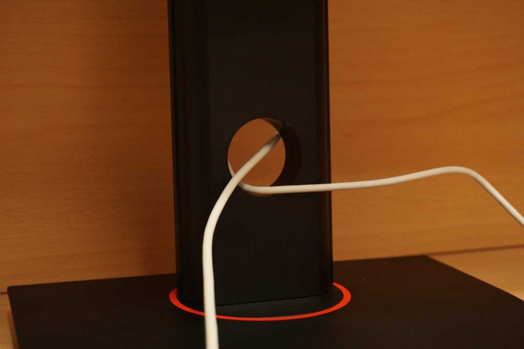 На этом же стенде есть отверстие для проводов. Мы подсоединили к устройству клавиатуру и мышь, провели через отверстие провода и теперь они не мешают работе. Но не хватает какого-нибудь крючка или кабель канала, в которые можно уложить провода.