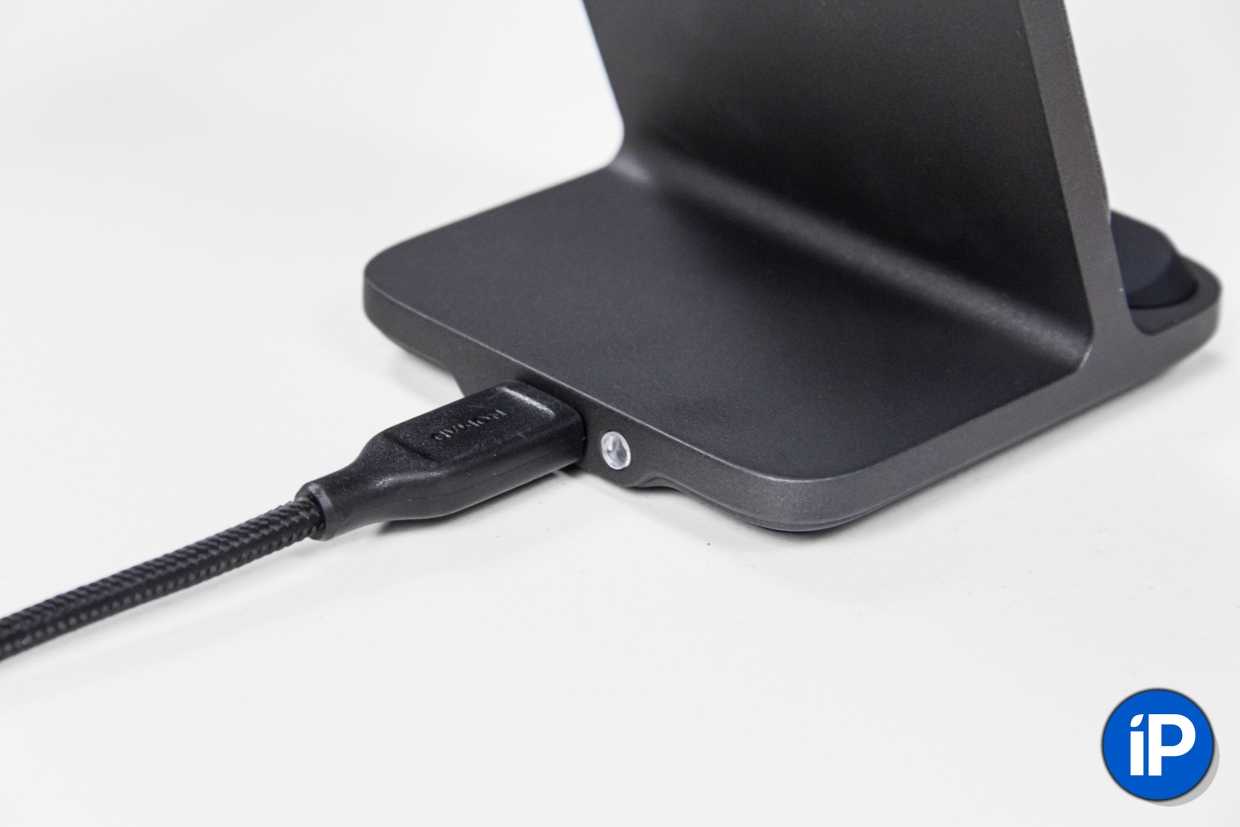 Хаб содержит 3 катушки для беспроводной зарядки, каждая из которых питается независимо от соседних. Это позволяет обеспечивать одновременную зарядку 2 устройств с максимальной мощностью по 10 Вт.