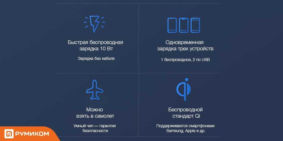 Xiaomi Mi Wireless Power Bank оснащен высококачественными литий-ионными элементами, большая емкость которых позволяет полностью зарядить смартфон, планшет, цифровую камеру и иные устройства, чтобы не остаться без заряда в самый важный момент.
