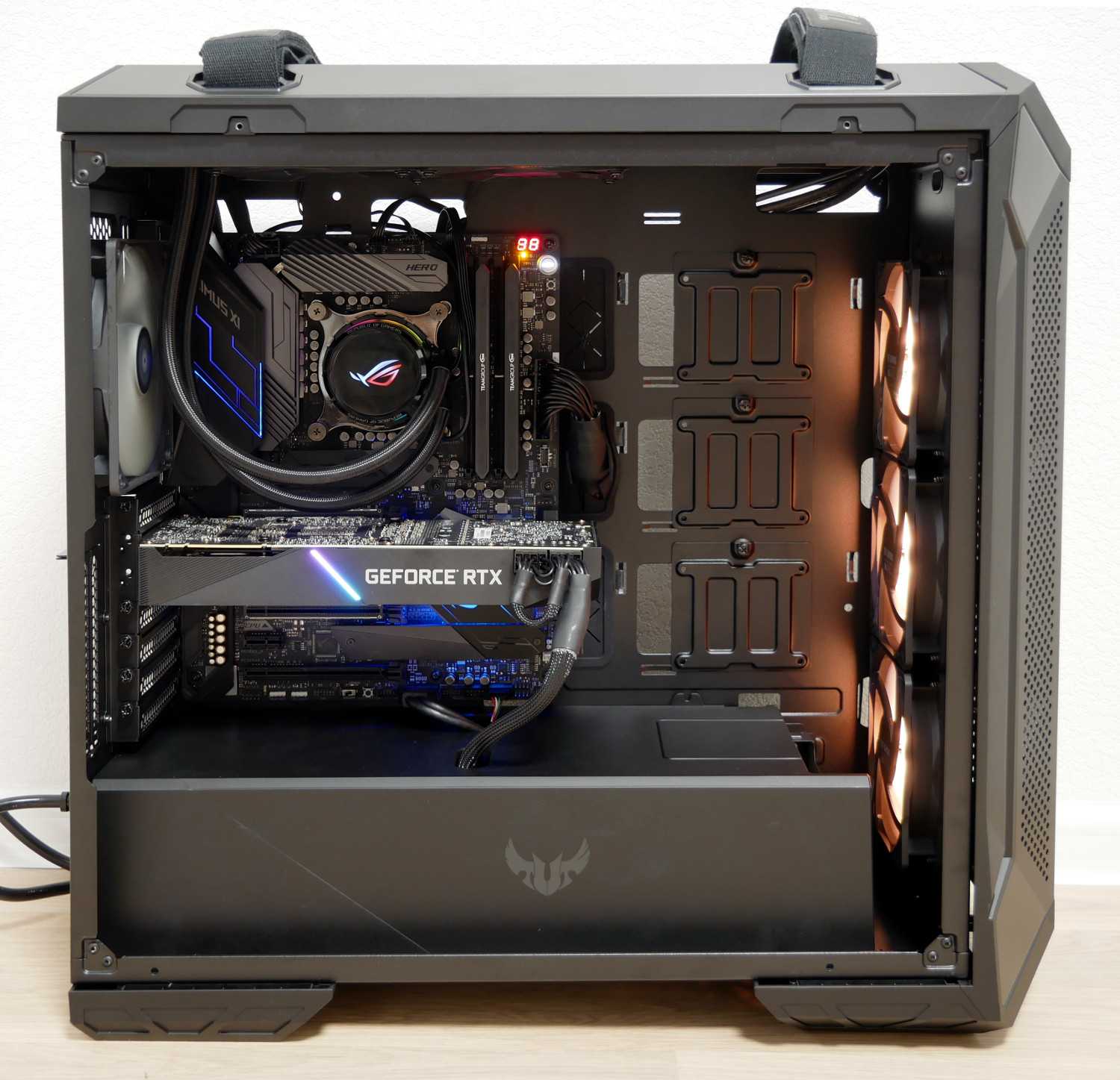 В процессе тестированияблок питания случайно отметился в другом тестовом стенде с материнской платойAsusROG Maximus XIHero(Wi-Fi) и видеокартойASUS TurboGeForce RTX2080 Ti.