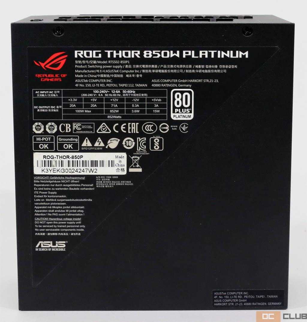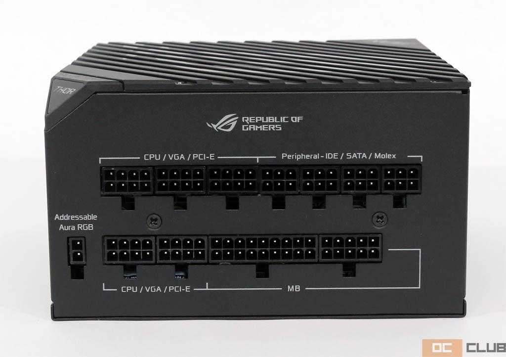 ASUS ROG Thor уместился в корпус глубиной всего 160 мм. Для блока с полностью модульной структурой подключения кабелей и 850-ваттной мощностью при Platinum-сертификате это весьма удивительно. Обычно подобные решения имеют корпус глубиной 170 мм. К слову, 1200-ваттный вариант ROG Thor – настоящий лимузин. Он занимает целых 190 мм в глубину.