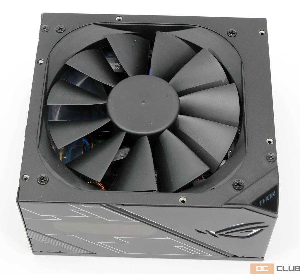 К слову, донорские SeaSonic Prime Platinum гарантированно не вращаются при нагрузке до 30%, а в диапазоне от 30-50% начинает играть роль ещё и температура. Развитые радиаторы у ROG Thor позволяют блоку оставаться пассивным до половинной нагрузки всегда.