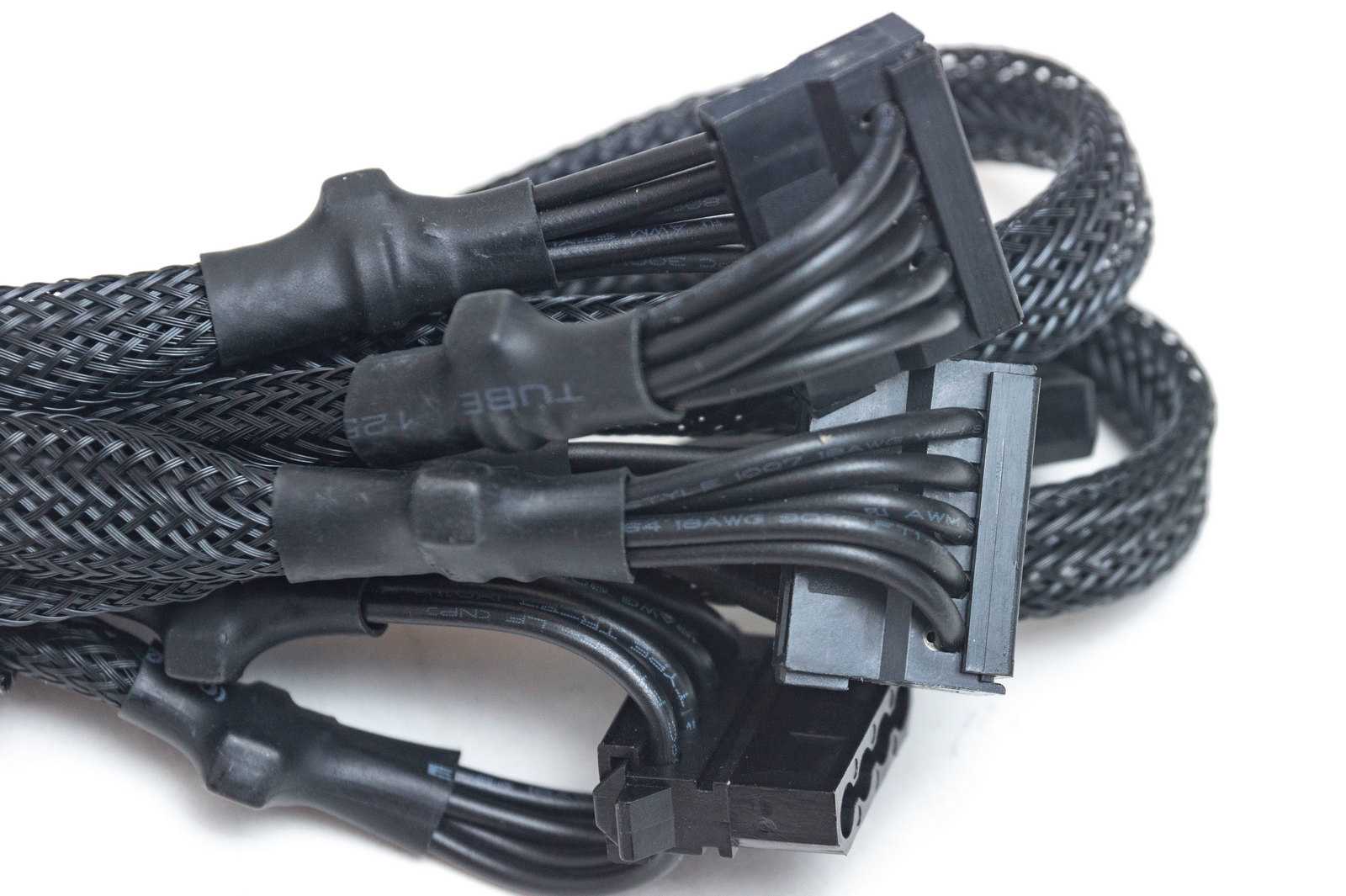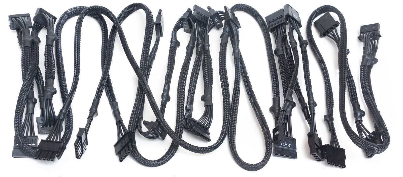 Важно отметить, что в комплекте с блоком питания идут кабели для подключения периферии. Все они имеют внешнюю оплетку, а поэтому довольно-таки качественные