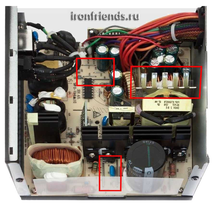 На этих местах должны быть конденсаторы и дроссели, предназначенные для сглаживания пульсаций напряжения. Именно из-за этих пульсаций происходит преждевременный выход их строя материнской платы, видеокарты, жесткого диска и других компонентов компьютера. Кроме того, такие блоки питания часто имеют маленькие радиаторы, из-за которых происходит перегрев и выход из строя самого блока питания.