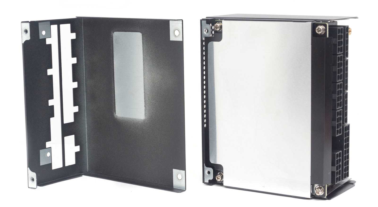 Радиаторы для охлаждения силовых элементов Г-образной формы, в верхней части имеются перфорации для лучшей вентиляции.