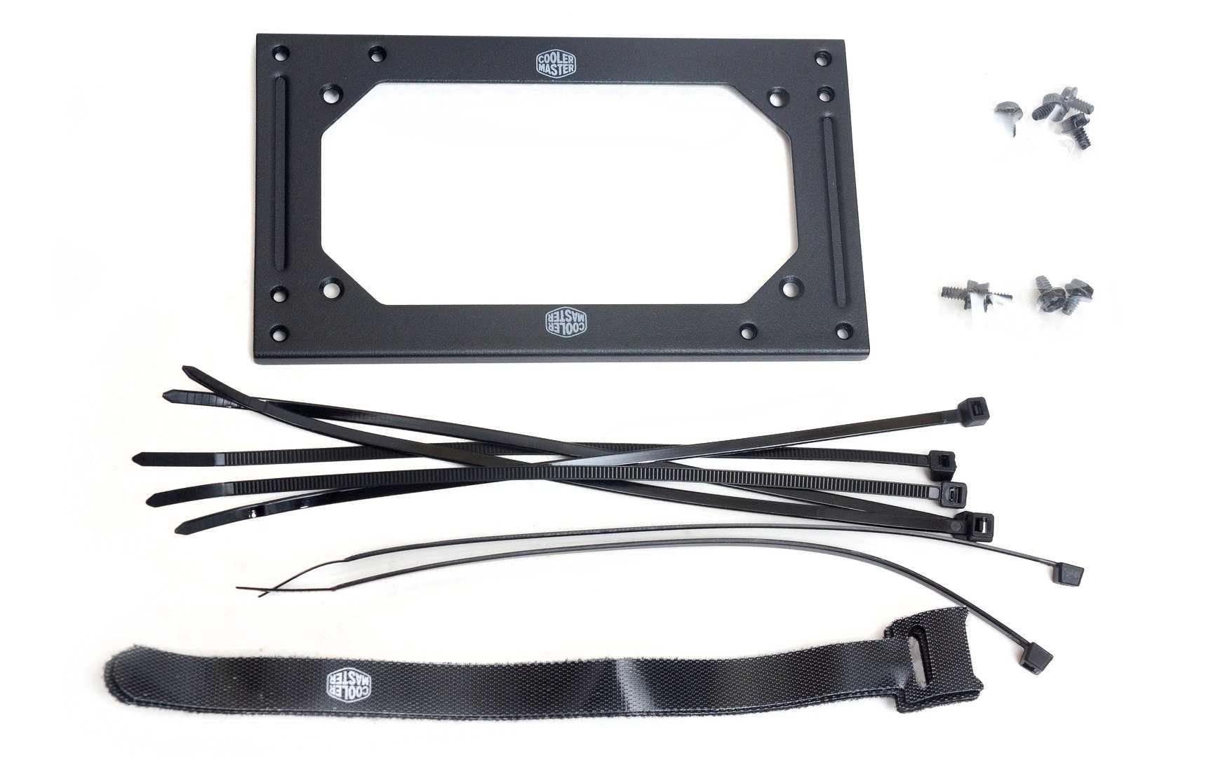 Также в комплекте, кроме винтов крепления, находятся стяжки: десяток пластиковых разовых и три тканевых на липучках.