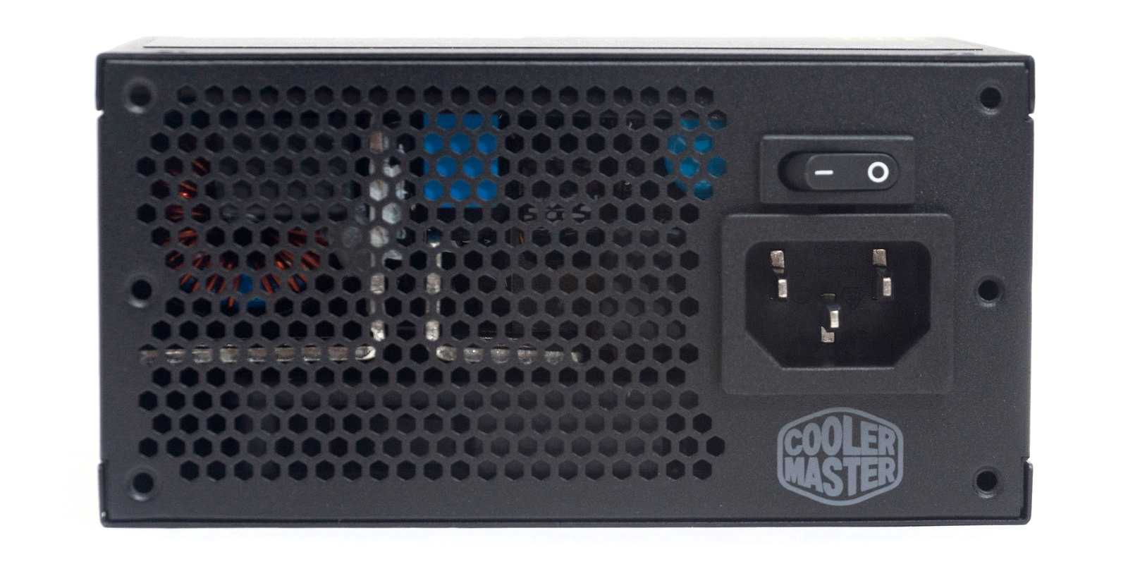 На тыльной стороне, кроме привычного тумблера включения и сетевой розетки, мы видим кнопку переключения режимов работы вентилятора. Две трети всей панели – перфорация в виде сот.