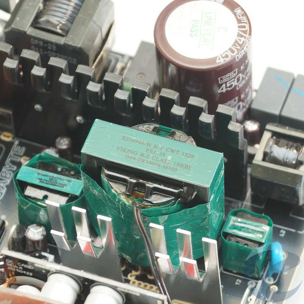 Блок питания Gigabyte G750H выполнен на знакомой нам OEM платформе CWT. Совсем недавно мы тестировали блок питания Thermaltake Smart DPS G 650W, и здесь мы видим практически идентичную плату с небольшим исключением в виде отсутствия платы с дополнительным «умным» процессором и добавлением небольшой платы с ШИМ-контроллером. Кто читал предыдущий обзор, может пропустить этот пункт.