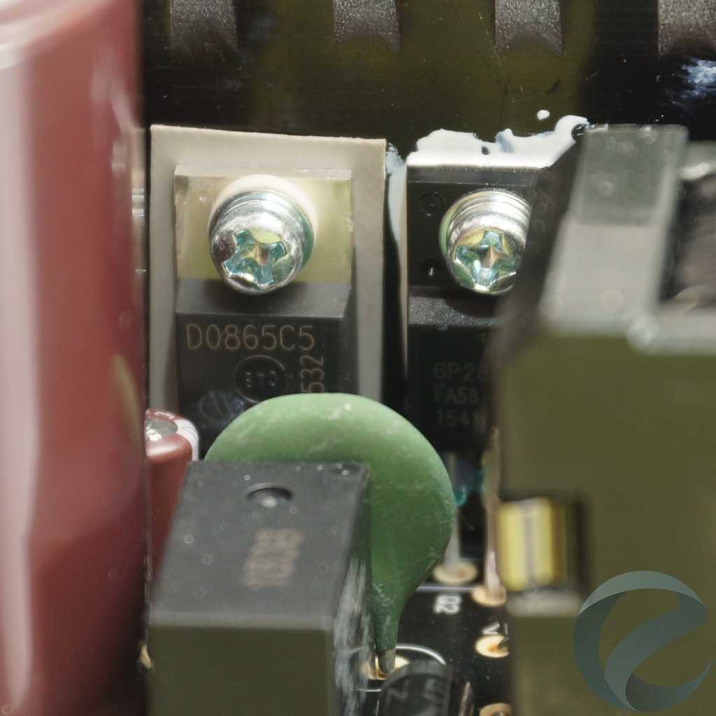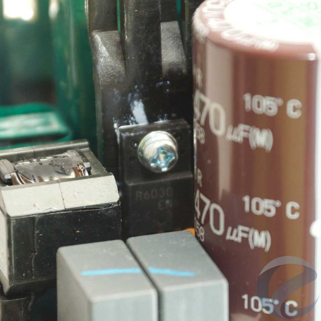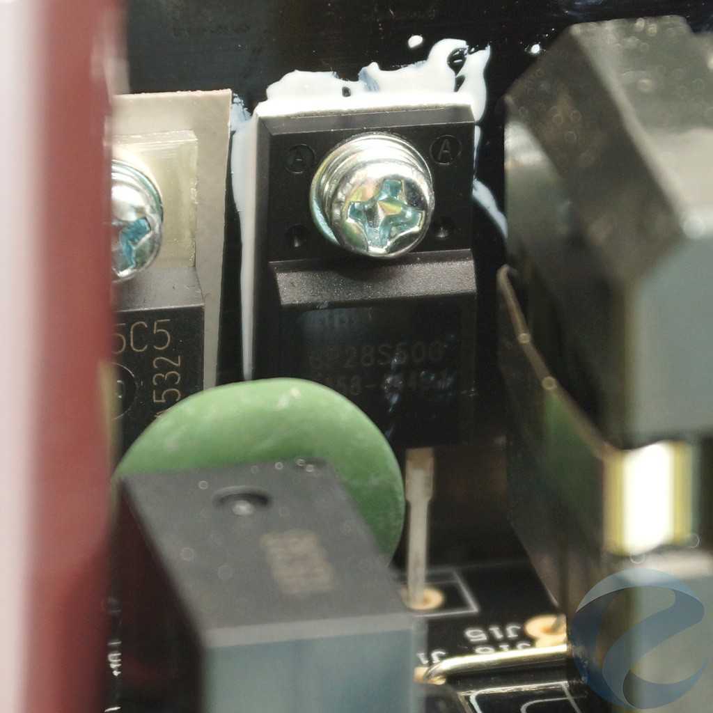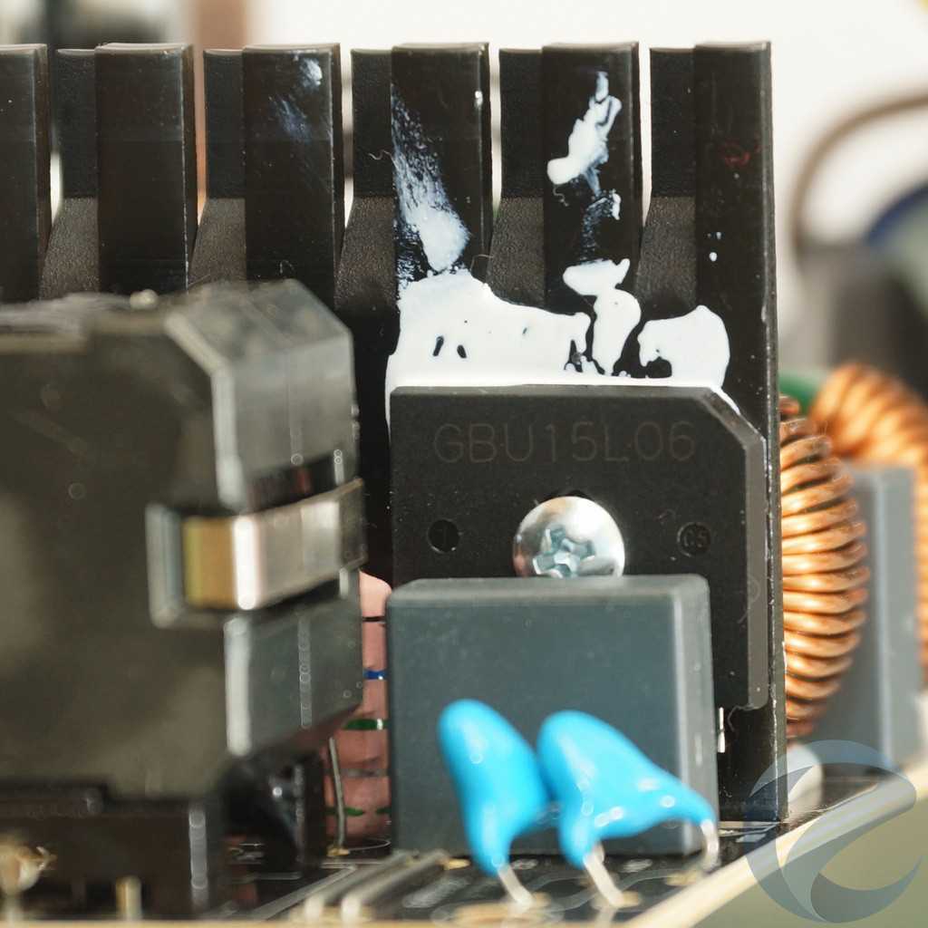 На общем радиаторе с краю разместилась диодная сборка GBU15L06, далее парочка транзисторов преобразователя – R6030ENX, пара транзисторов корректора мощности – GP28S60G и диод D0865C5.