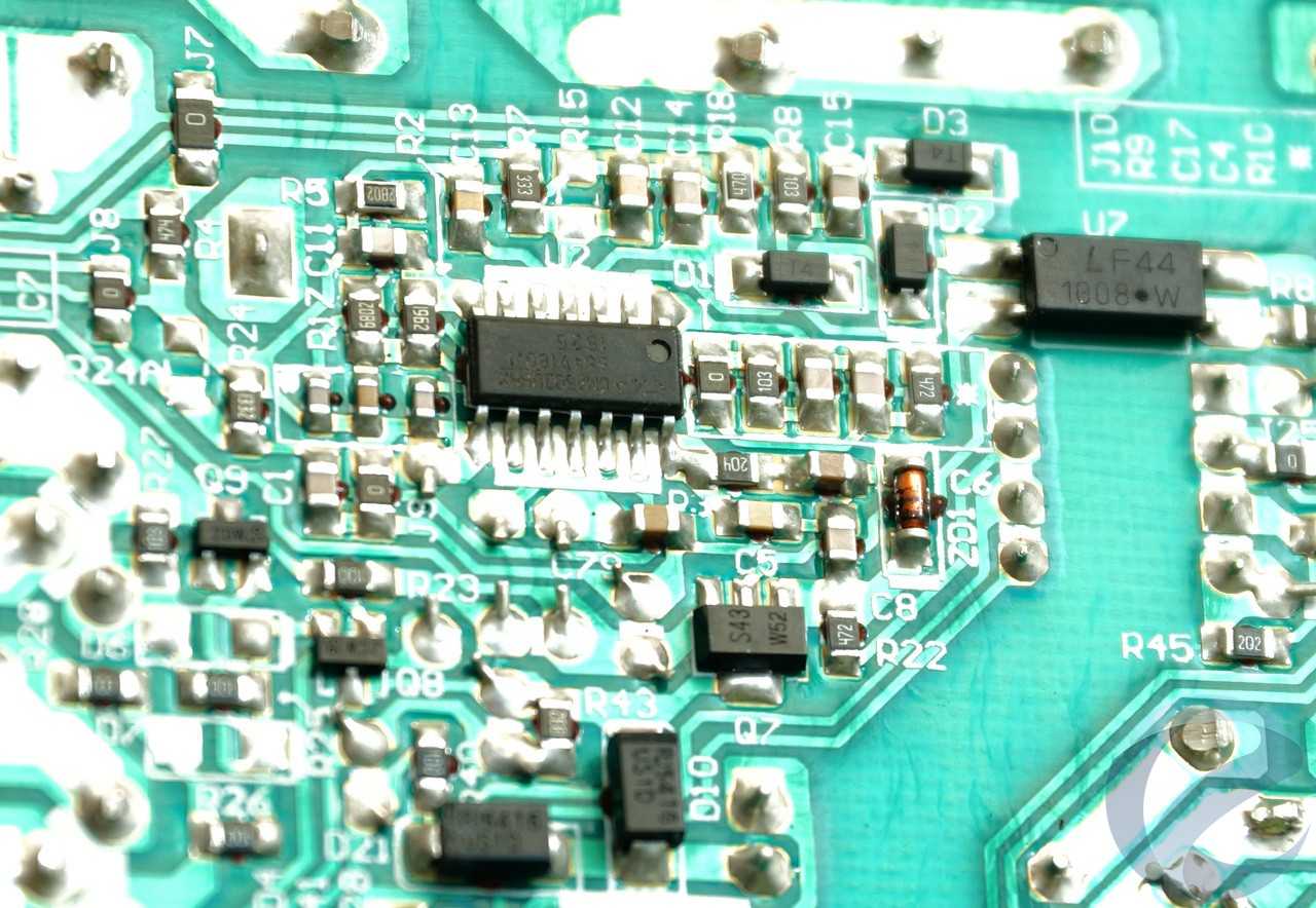 А микросхема управляющая корректором мощности СМ6502располагается на обратной стороне основной платы.
