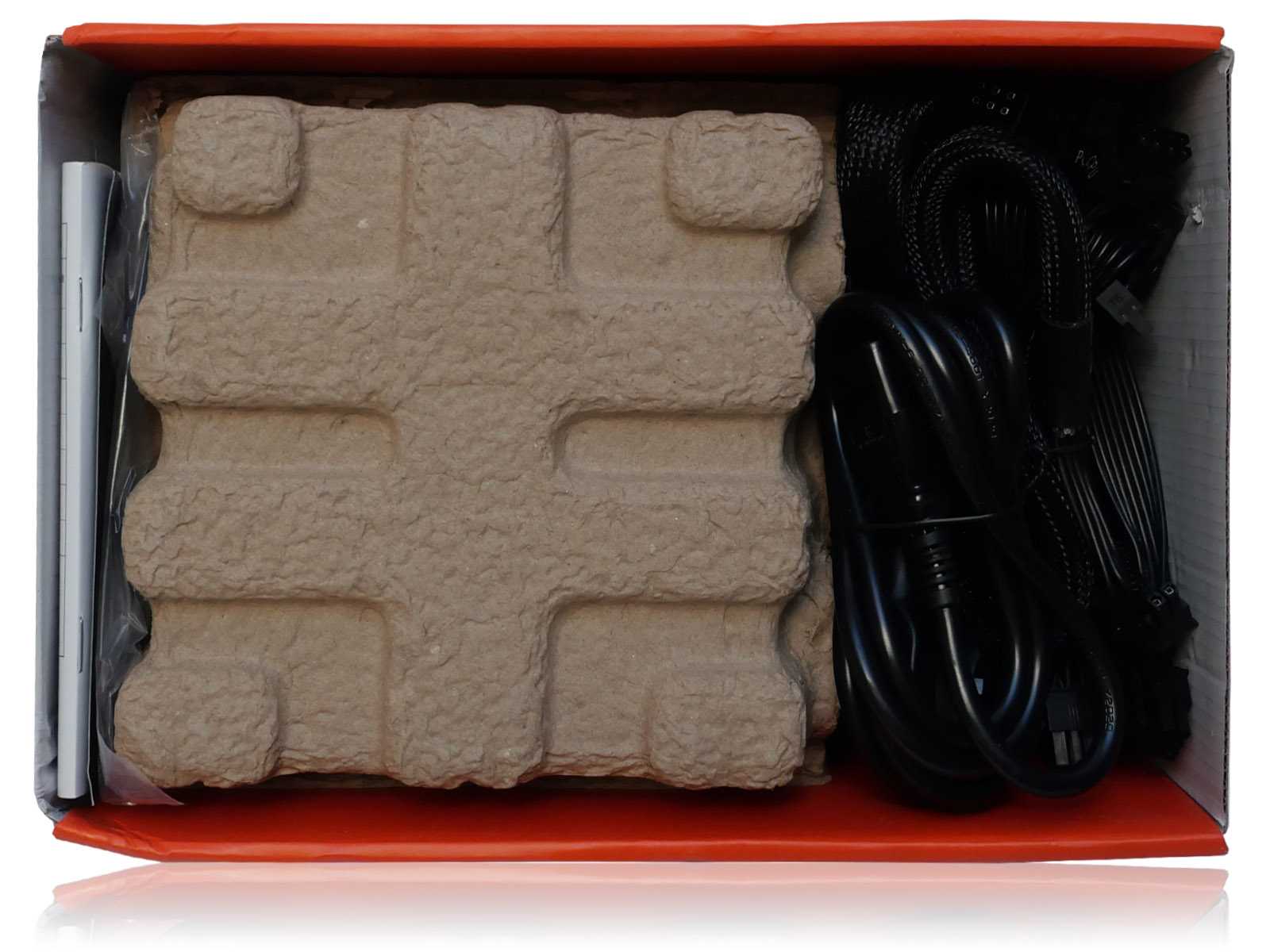 Внутри коробки блок питания дополнительно защищён коробом из плотного картона, поэтому внешние замятия не отразились на товарном виде и целостности самого устройства.