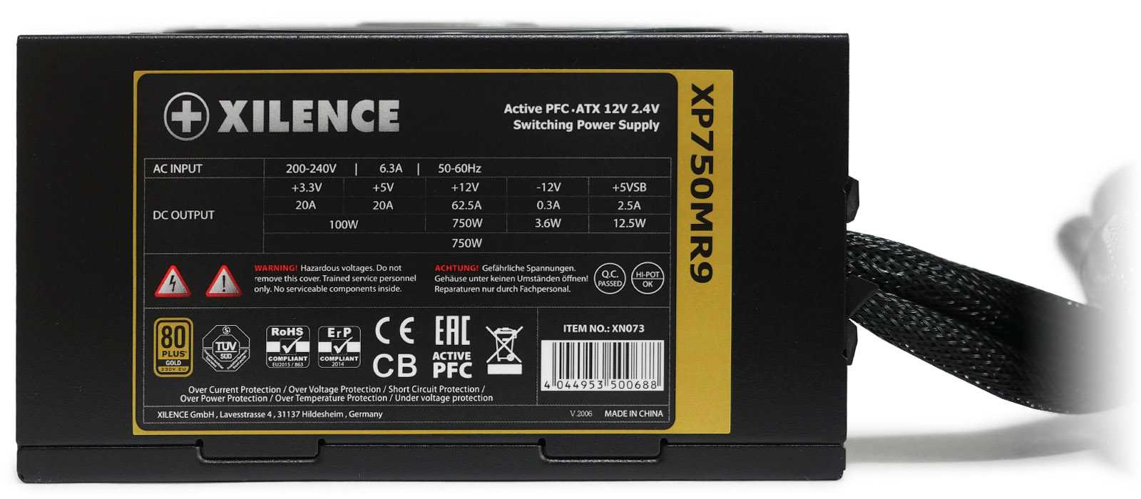 Xilence Performance X 750 Вт разработан для европейского рынка, о чём говорит адаптация только под сети электропитания с напряжением 230 В. Как и подобает блоку питания, который должен стать основой производительного современного персонального компьютера, основной упор сделан на двенадцативольтовой линии, коэффициент отношения мощности которой к полной мощности равен 1. Суммарная нагрузка на линии +3,3 В и +5 В относительно невысокая и ограничена ста ваттами, чего в большинстве сборок достаточно.