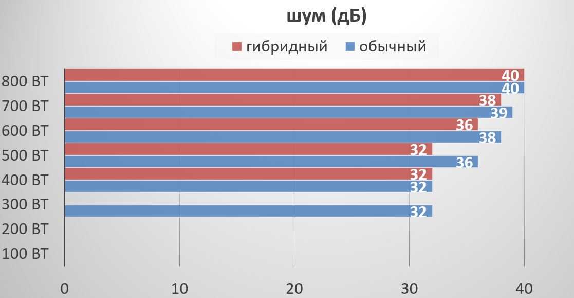 Во втором, гибридном, режиме вентилятор запустился при нагрузке свыше 400 Вт и обороты увеличил только к максимальной нагрузке. На всем диапазоне вращения вентилятор остается очень тихим, на минимальных оборотах его можно назвать бесшумным (уровень шума — менее 32 дБ). На максимальных оборотах он также остается в комфортных пределах, не более 40 дБ.
