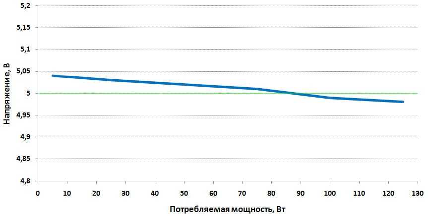 Канал +5 не хуже – минимальное 4,98 В, максимальное 5,04 В.
