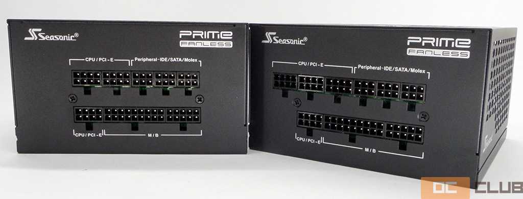 На противоположной модульные разъёмы. Все подписаны и вплотную сгруппированы. У старшего PRIME Fanless PX-500 на один разъём CPU/PCI-E больше, и в комплекте на один кабель больше. Комплектный набор позволяет задействовать все разъёмы, лишних кабелей тоже не остаётся. Казалось бы, очевидная вещь, но прецеденты бывают и в топ-сегменте тоже.