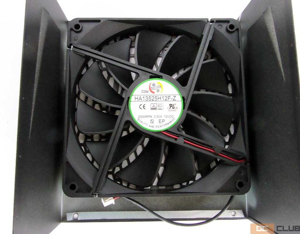 За активное снабжение свежим воздухом отвечает 135 мм вентилятор Hong Hua (HA13525H12F-Z). Гидродинамический подшипник, до 2000 об/мин, 0,5 А – вот и всё, что про него можно сказать. Ну и целых пол ампера как для 135 мм вентилятора – это круто. Дуть будет знатно.