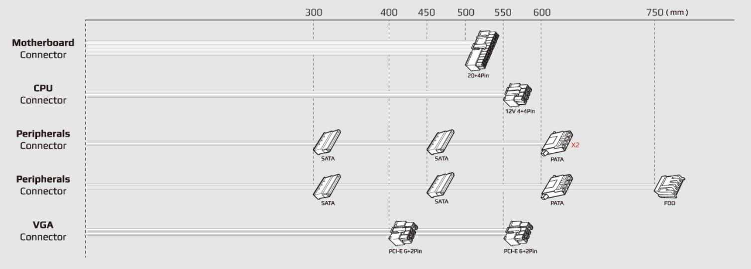 Кабели достаточно мягкие, для крупных корпусов со скрытой укладкой их длины может быть недостаточно.