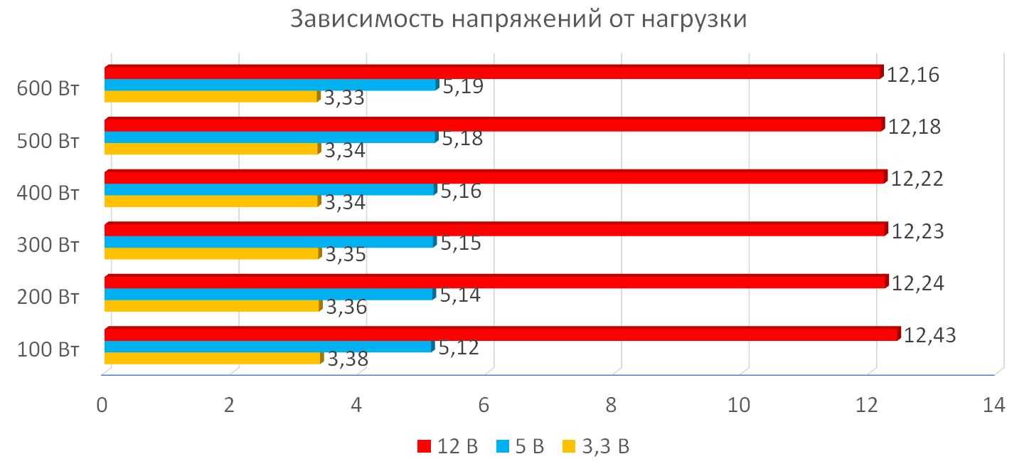 - Выходы: 3,3В — 23 А, 5В – 17 А, 12В – 48 А;