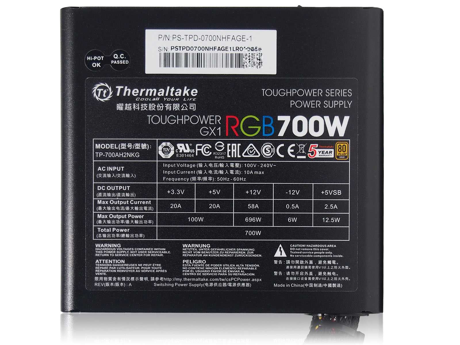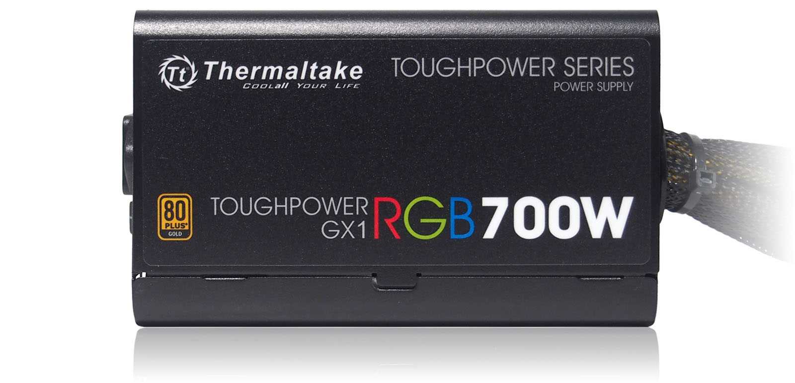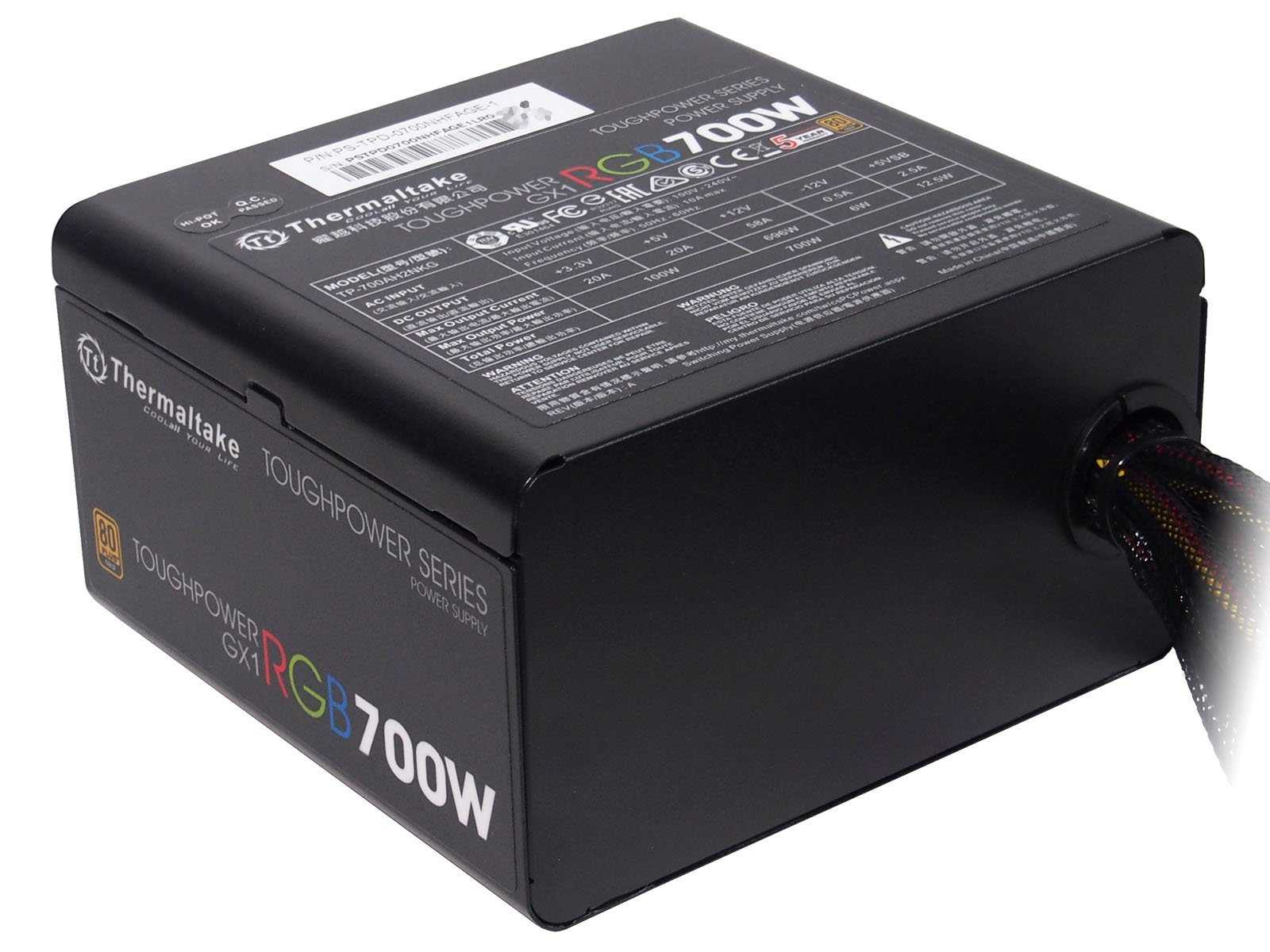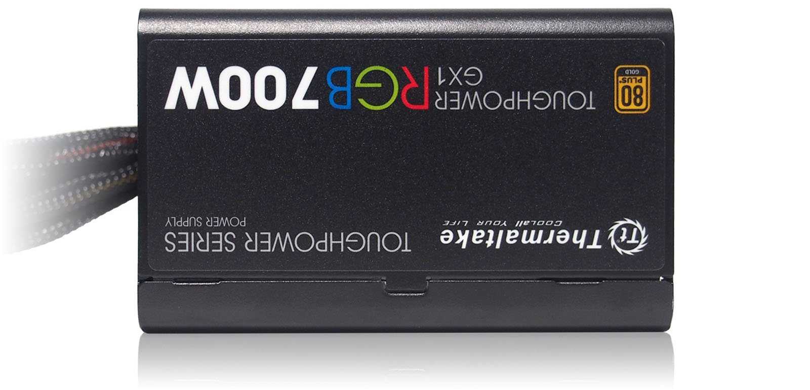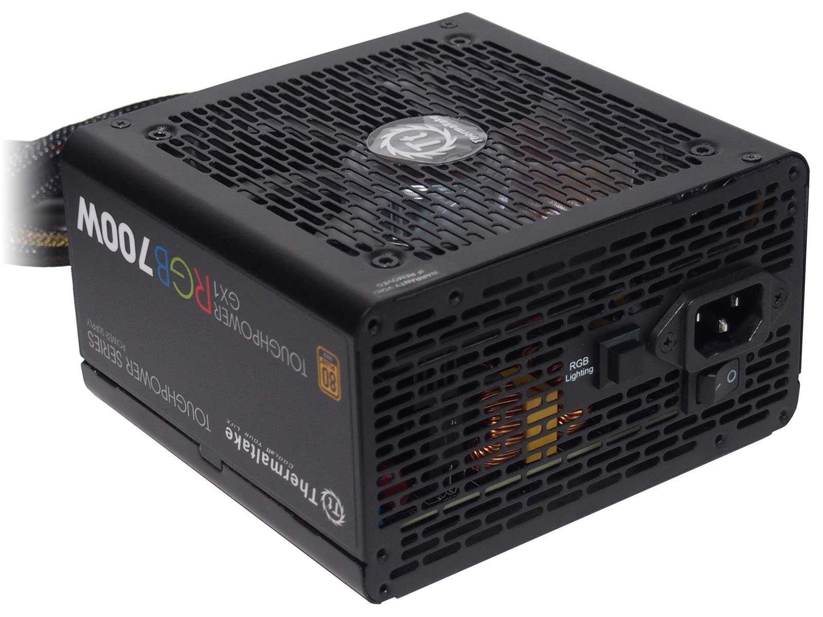 На боковых гранях — наклейки с указанием модели,сертификата 80 PLUSияркими буквами RGB.