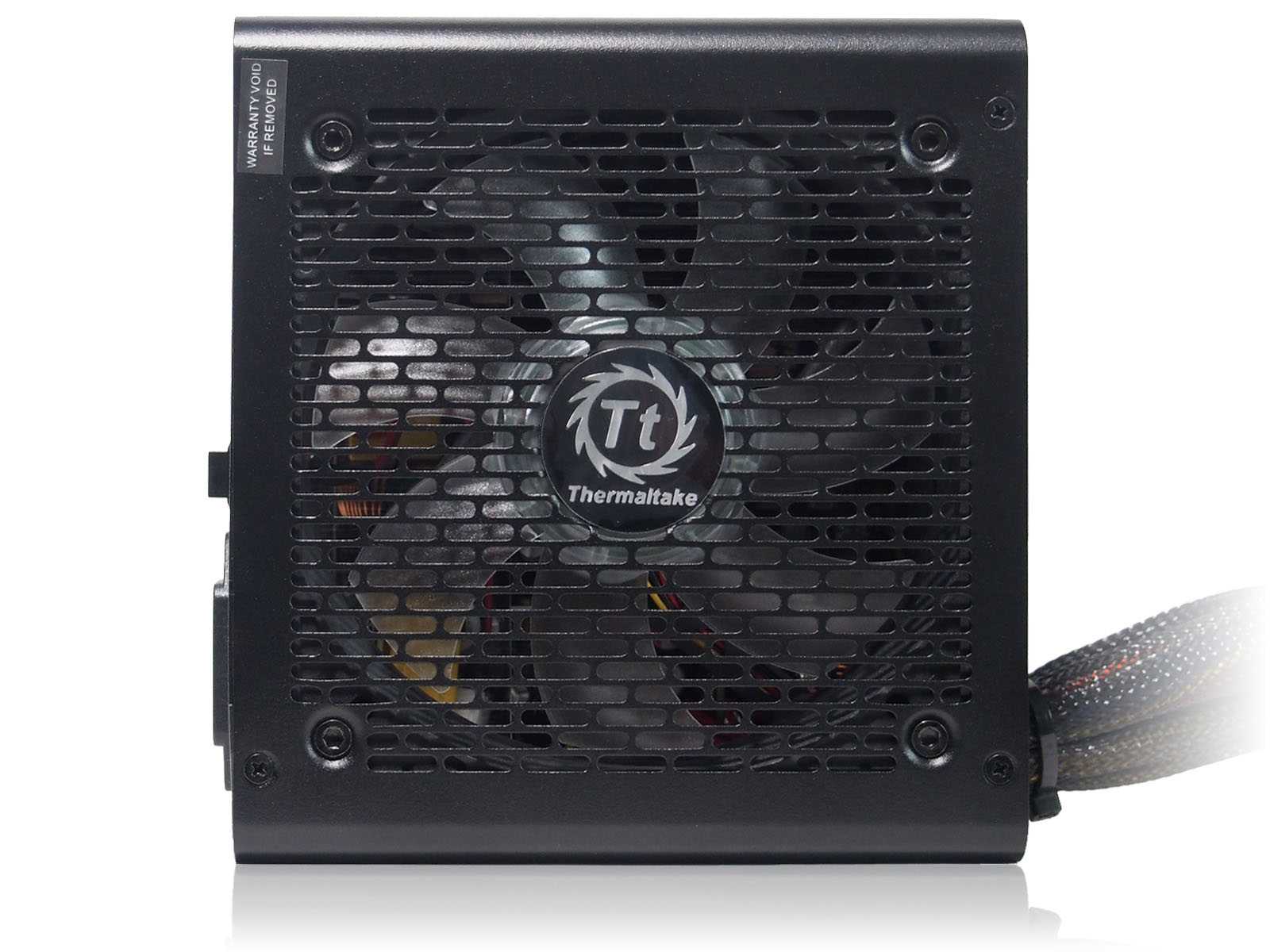 Используется 140-мм вентилятор с маркировкой Thermaltake TT-1425 и подсветкой типа Riing Plus из двенадцати светодиодов и кольцевого рассеивателя. Реальный OEM-производитель — Heng Sheng, модель — A1425S12S-2С. С внутренней стороны к вентилятору прикручена прозрачная пластиковая пластина для оптимизации воздушного потока. В местах крепления установлены резиновые противовибрационные вставки. Боковая перфорация на корпусе блока питания бутафорская, носит больше декоративный характер, так как полностью перекрывается боковой частью каркаса вентилятора и прозрачной накладкой. Подключение вентилятора к плате управления осуществляется коннектором, напоминающим колодку для внутренних USB-подключений, но с собственной разводкой контактов. Аналогичные вентиляторы продаются отдельно или в составе комплектов с внешними контроллерами типа Riing Tt Premium Edition.