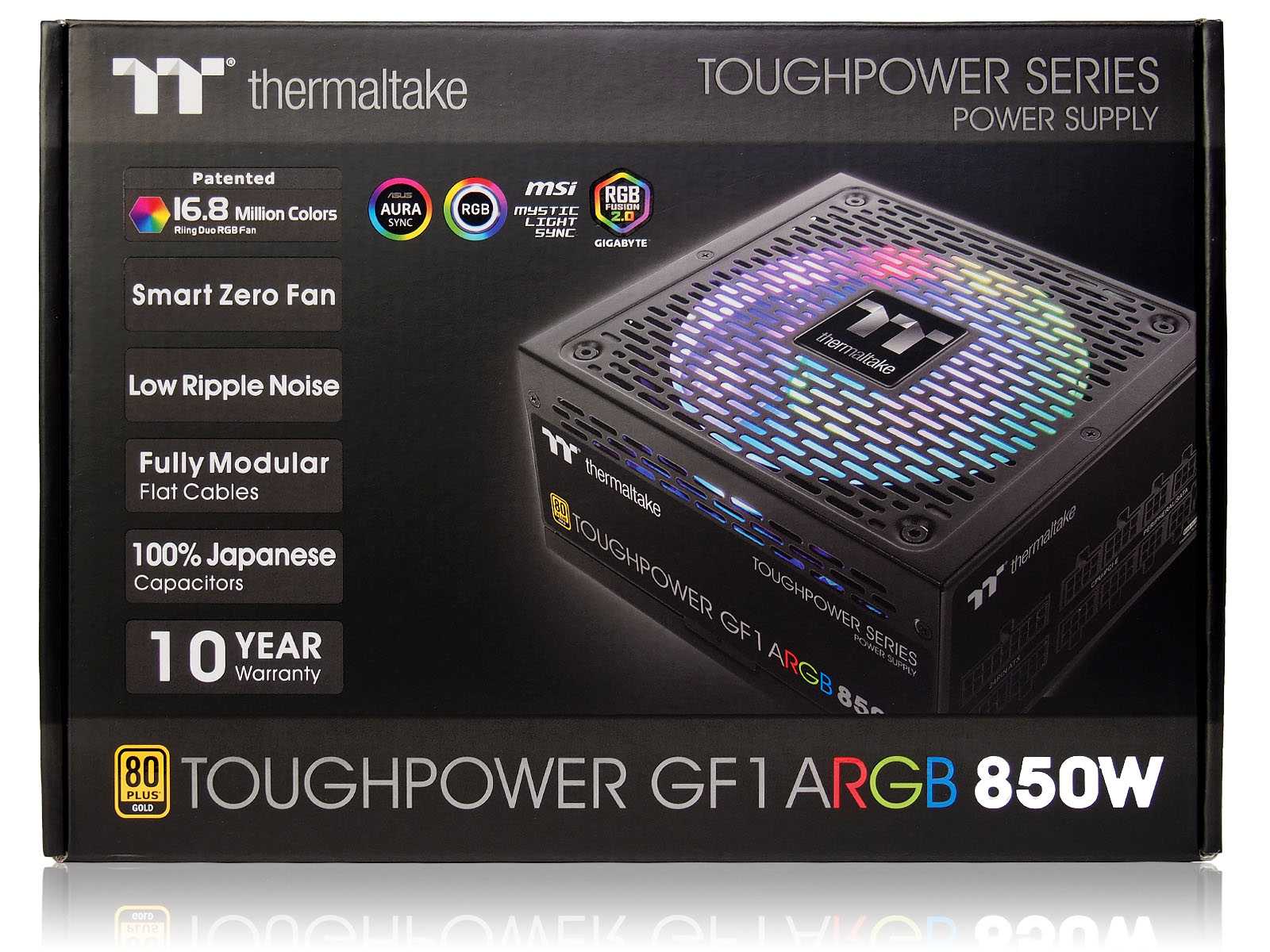 В Toughpower GF1 ARGB 850W заявлены все базовые типы защит от внештатных ситуаций: