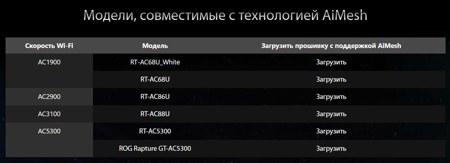 - Возможность использовать различные роутеры ASUS (из списка совместимых моделей)
