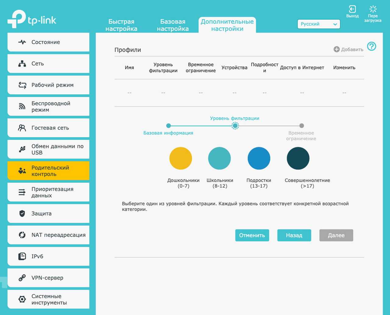 Если присмотреться к структуре раздела «Дополнительные настройки» и заложенному функционалу, то заметно очень сильное сходство с продукцией TP-Link. Те же названия, группировка и доступные опции, только с симпатичным дизайном интерфейса в красно-розовой расцветке.