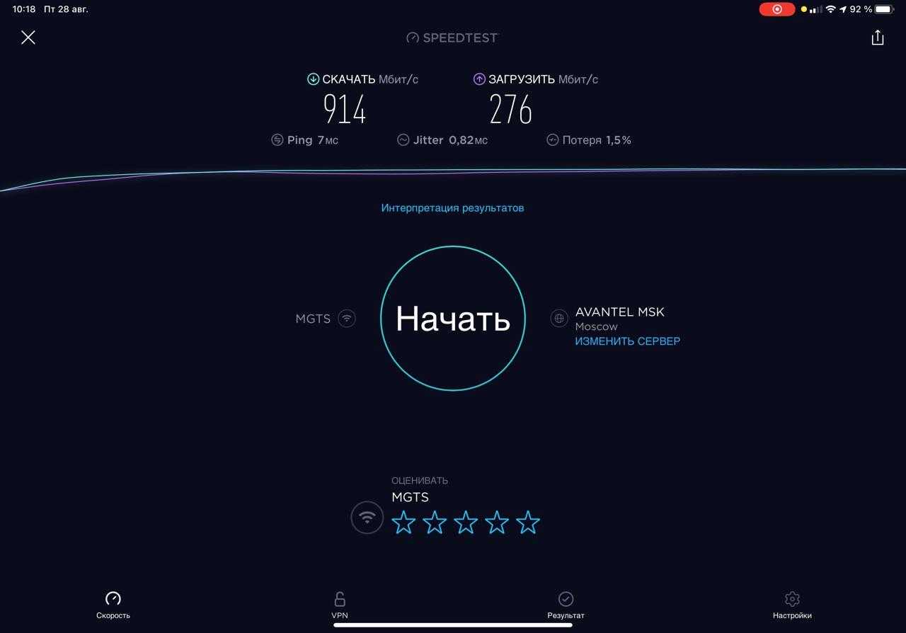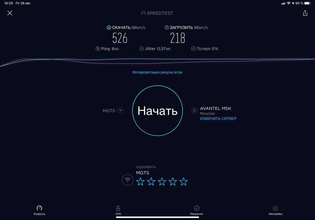 Все корректно, быстро. Но оценить Archer AX50 можно только при настоящих нагрузках и скорости провайдера до гигабита. Именно с таким мы и провели основные тесты, используя iPad Pro 2020 в качестве подключаемого потребителя Wi-Fi 6.