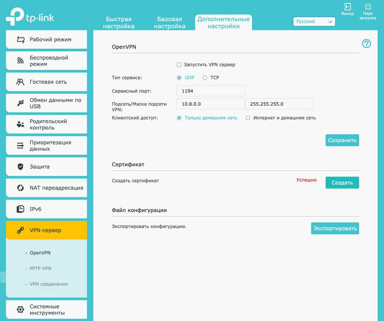 - Полностью русифицированный web-интерфейс;