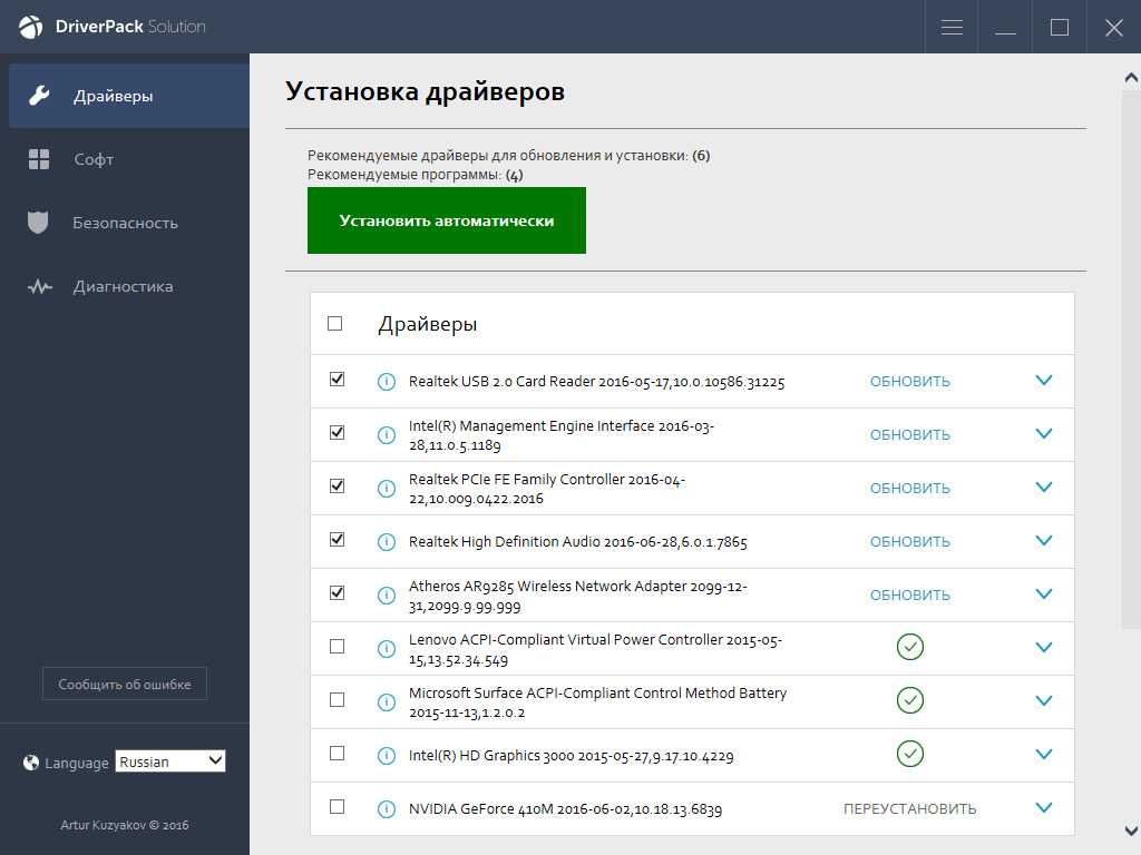 Программа Driver Pack позволяет найти оптимальный драйвер для адаптера