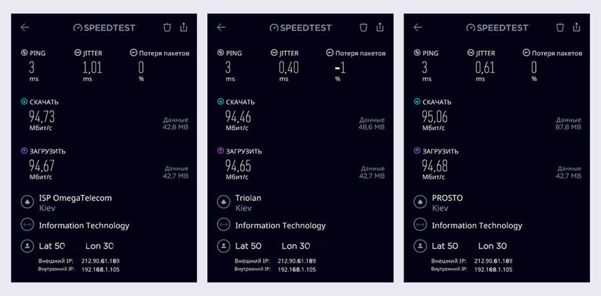 Гигабитные порты в полной мере способно раскрыть соединение свыше 100 Мбит/с, но у меня под рукой такого не оказалось. Тем не менее, Tenda AC8 выдавал ожидаемо максимальные цифры для конкретно моего тарифа Интернет-провайдера.