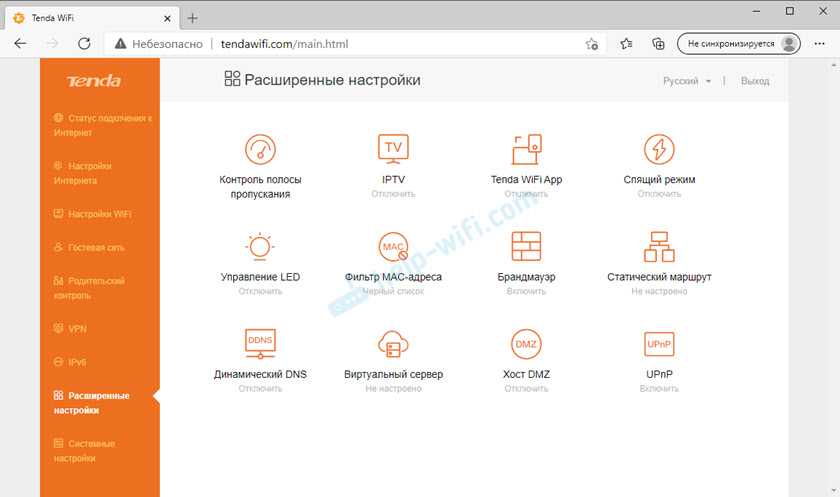 Есть раздел «Расширенные настройки», где разместились настройки полосы пропускания, IPTV, брандмауэра и т. д.