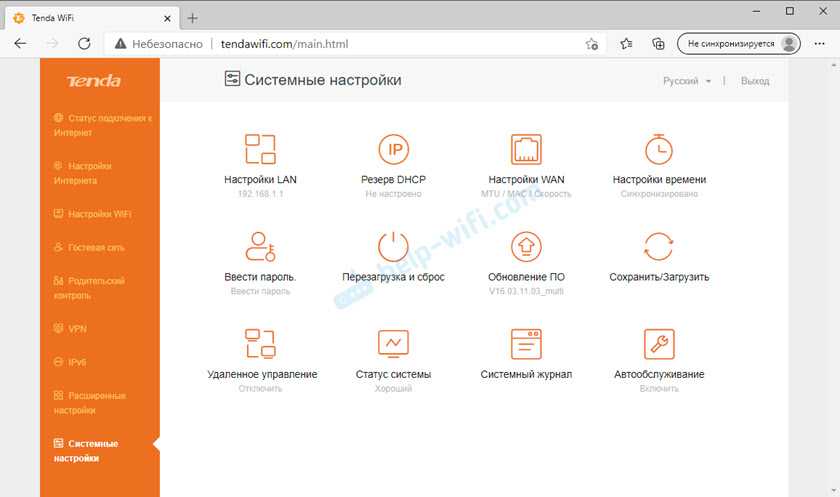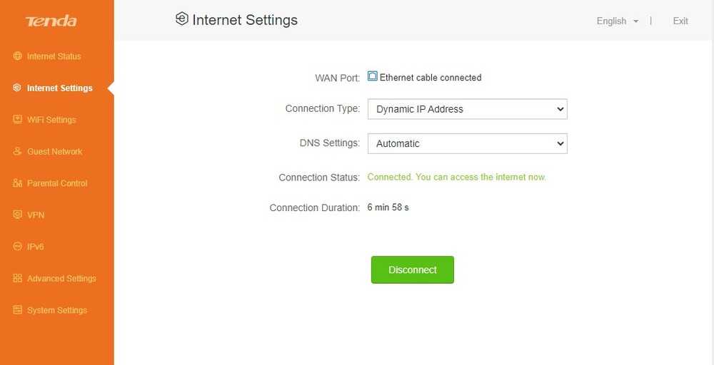 На роутеры Tenda всегда устанавливается хороший веб-интерфейс с понятным расположением всех настроек. Веб-интерфейс доступен на разных языках (можно сменить язык в настройках). Главная страница выглядит вот так: