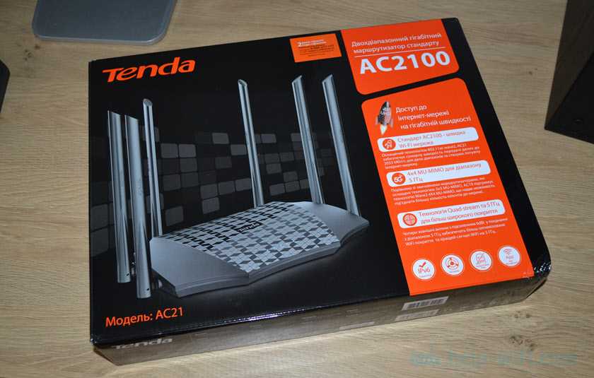 Tenda AC21 поставляется в большой коробке. На самой коробке можно найти очень много полезной информации о роутере: технические характеристики, особенности и сравнение с другими моделями от Tenda.